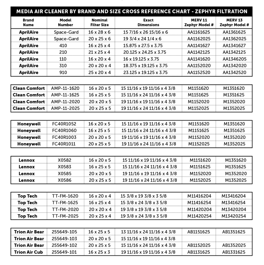 MEDIA AIR CLEANER CROSS REFERENCE